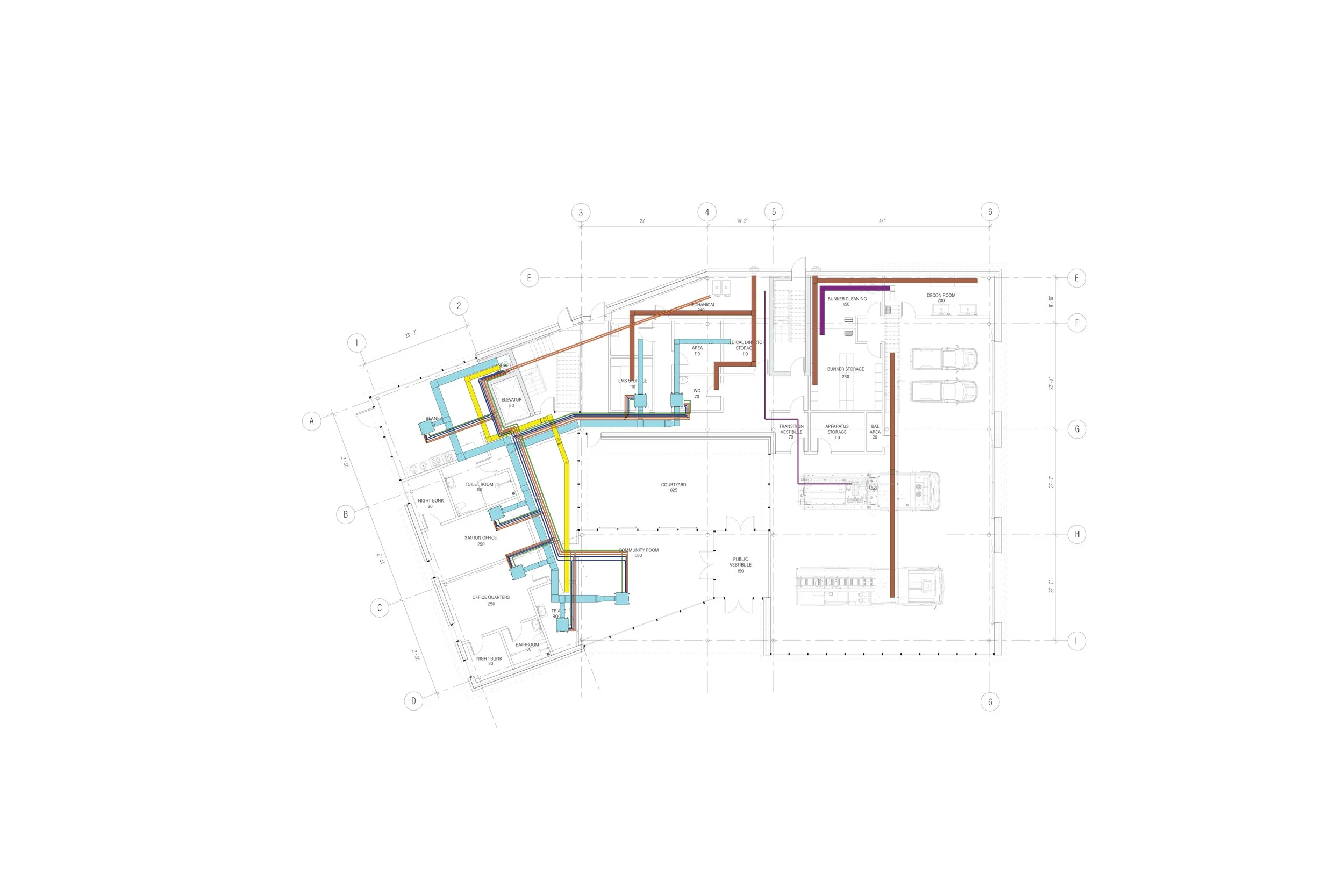 We focused on resolving structure, HVAC, facade, life safety, and more to create a comprehensive proposal for a fire station. Through all aspect, we kept in mind our goal of rethinking what a civic building is and how it can function to its needs but also be a human-scaled and welcoming space for both the people who work there and the general public.