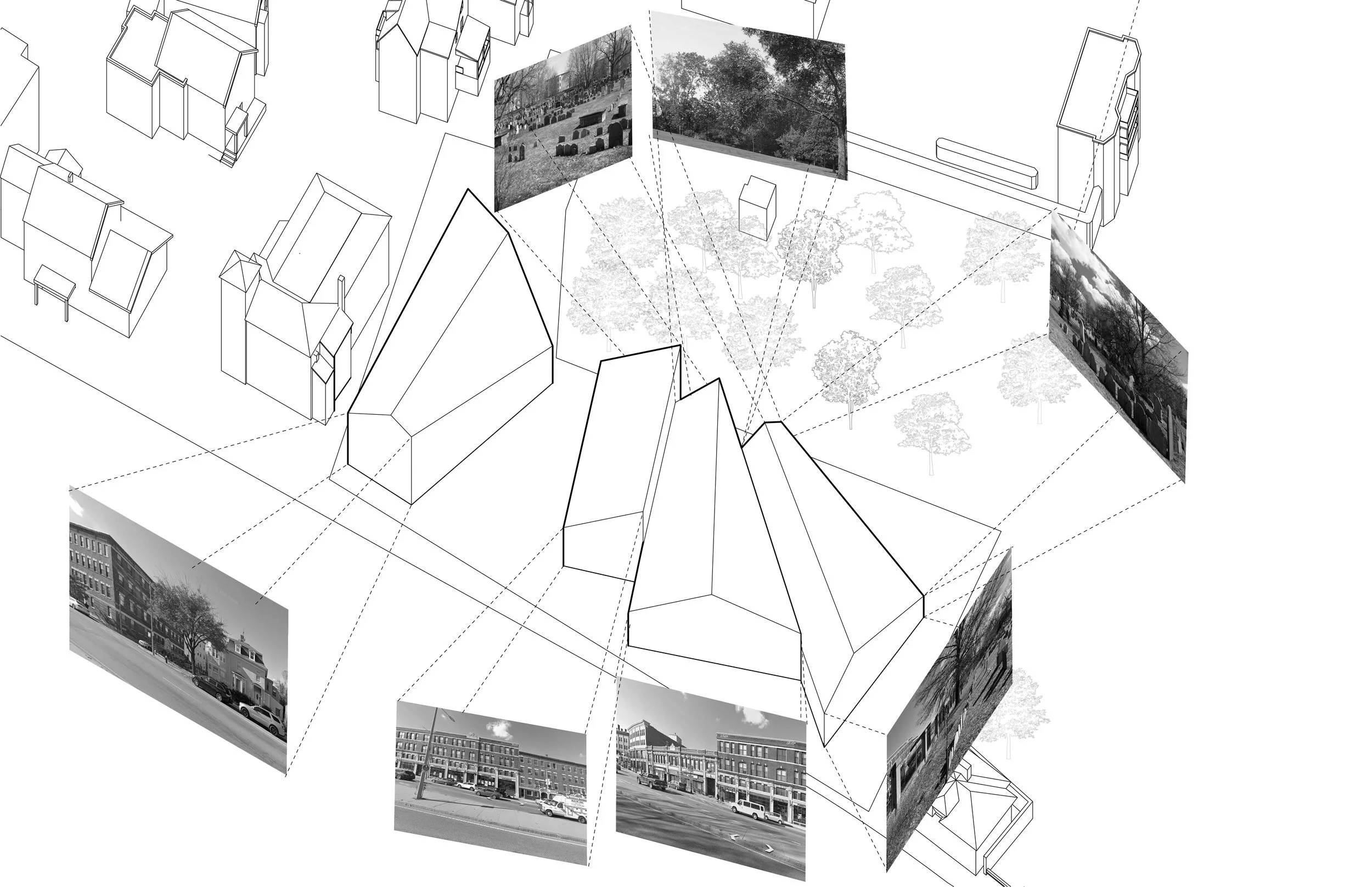This project for the Uphams Corner Branch of the Boston Public Library sought to exemplify the synthesis of various elements—cultural, and environmental—to create a sustainable and community-centric architectural intervention. Uniquely located next to Dorchester Burial Ground, the goal was to create a space for members of the community to engage with their curiosity through various spaces catering to their needs.